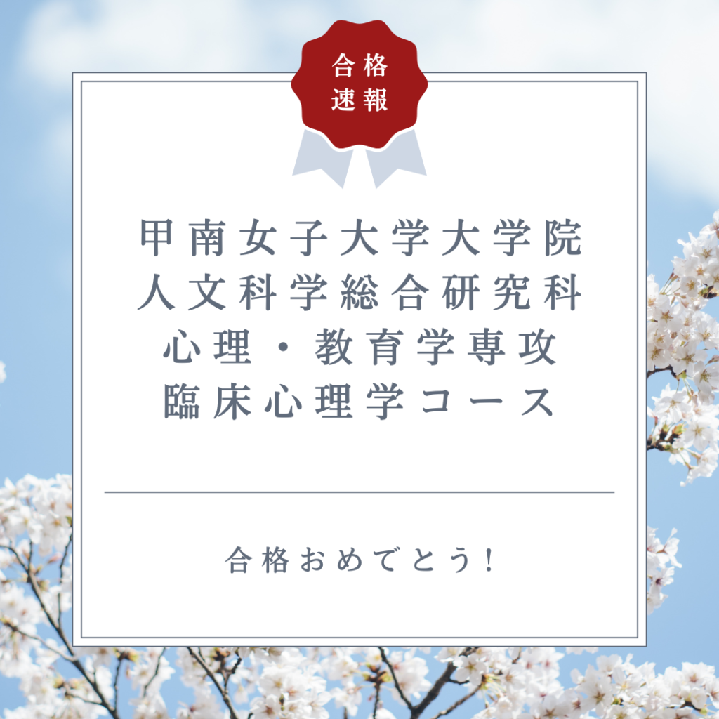 NEW!甲南女子大学大学院 人文科学総合研究科 心理・教育学専攻 臨床心理学コース 1名